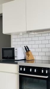 Il se compose d’un salon équipé d’une télévision par satellite, d’une chambre séparée ainsi que d’une salle de bains dotée à la fois d’une baignoire et d’une douche. La cuisine entièrement équipée comprend un four, une plaque de cuisson, un micro-ondes, un réfrigérateur, un grille-pain et une machine à café, permettant aux hôtes de préparer leurs repas. Pour plus de commodité, l’appartement dispose également d’un lave-linge et d’un sèche-linge ainsi que d’un coin repas.