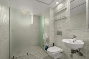 The accommodation includes various room types from single to family-sized units, many featuring parquet floors, heating, desks, seating areas, and private bathrooms with walk-in showers. Some apartments offer fully equipped kitchens with stovetops, refrigerators, dishwashers, kitchenware, washing machines, tea and coffee makers alongside flat-screen TVs with cable channels. Certain rooms provide city or landmark views while others cater exclusively to adults over 18 years old.