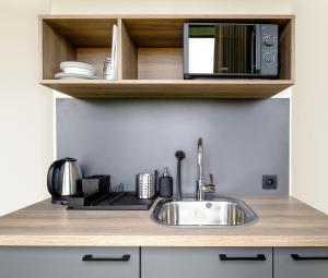 Das Hotel bietet Zimmer im Erdgeschoss mit schallisolierten Wänden, Heizung sowie privaten Badezimmern mit Dusche und Haartrockner. Zur Wahl stehen Einzel-, Zweibett-, Doppel- oder Familienapartments, einige verfügen zudem über Kitchenettes mit Kühlschrank und Mikrowelle zur Zubereitung von Speisen. Jedes Zimmer ist mit einem Flachbildfernseher mit Kabelkanälen, einem Schreibtisch, Kleiderständern sowie hypoallergenen Kissen - darunter auch Federkissenfreie Optionen - ausgestattet. Barrierefreiheit wird durch rollstuhlgerechte Raumgestaltung und ebenerdige Duschen gewährleistet.