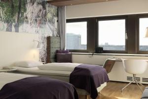 El hotel dispone de habitaciones modernas equipadas con televisión por cable y baños privados con ducha o bañera. Algunas estancias ofrecen vistas a la ciudad o al lago Saint Jørgen. Las opciones van desde habitaciones dobles con suelos de parquet y cajas fuertes hasta amplias suites que incluyen salones independientes, cocinas pequeñas, saunas, batas, minibares, teteras y cafeteras así como zonas de estar con televisores pantalla plana.