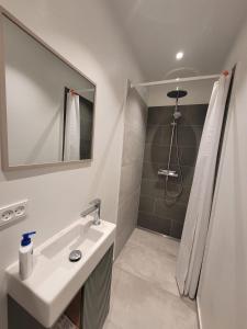 The apartment features one separate bedroom and a living room equipped with a sofa bed and flat-screen TV. The bathroom includes a shower and hairdryer. Guests can prepare meals in the fully equipped kitchen that contains an oven, stovetop, dishwasher, toaster, kitchenware, wine glasses, and a dining area. Additional conveniences include fresh linens on three beds, a wardrobe with clothes rack and drying rack in the entryway.
